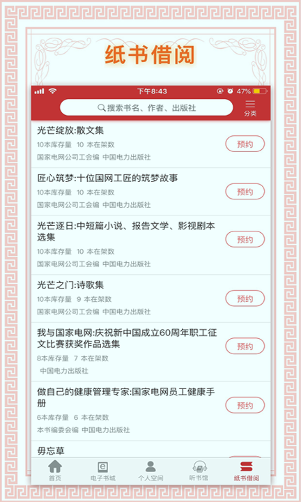 2.该应用拥有强大的搜索功能,用户可以通过图书类别、作者名、书名等多个方式快速找到目标书籍。书香国网也支持个性化推荐,基于用户的阅读历史和偏好,为用户提供量身定制的书单建议。